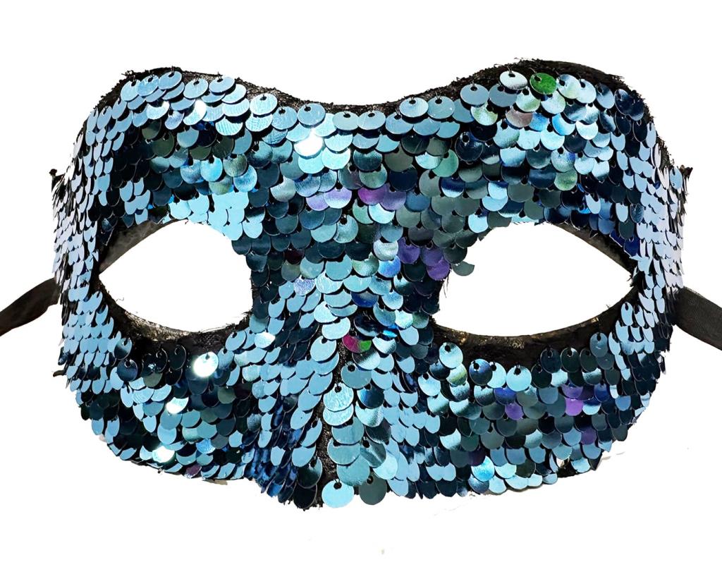 Mavi Renk Payetli Pullu Parti Maskesi Balo Venedik Yetişkinler için uyumludur Maske üzeri pul payet işlemelidir İp aparatı sayesinde yüze...