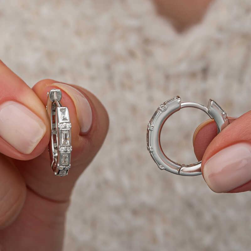 Gümüş Baget Taşlı Halka Kadın Küpe