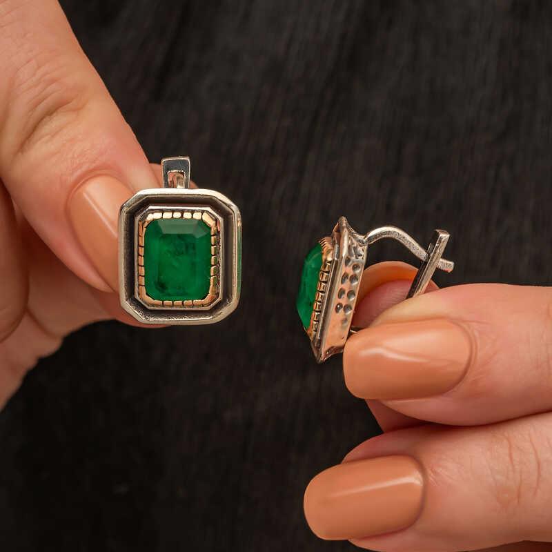 Gümüş Yeşil Taşlı Otantik Kadın Küpe