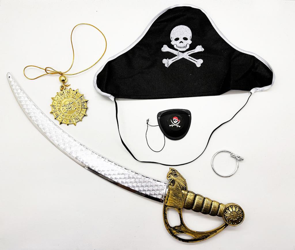 Bu 5 parçalık korsan kostüm seti, ister bir partiye katılın ister sadece hayal gücünüzü kullanın, bir korsan gibi hissetmenizi sağlayacak her şeye sahiptir. Set, bir korsan şapkası, bir korsan kılıcı, bir göz bandı, bir küpe ve bir korsan madalyonu içerir.