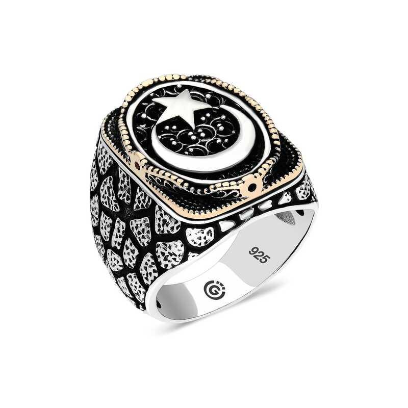 Gümüş Ay Yıldız Oval Erkek Yüzük