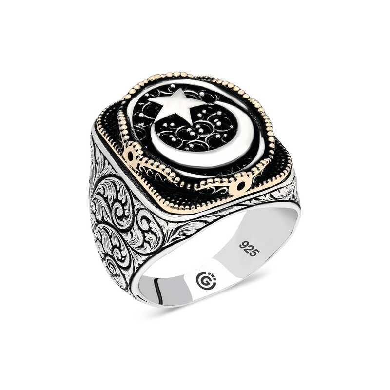 Gümüş Ay yıldız Oval Erkek Yüzük Gümüş üzerindeki ay yıldız oval erkek yüzük modeli günün her anında kullanabileceğiniz şık bir aksesuardır....