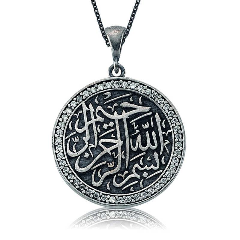 "Besmele" is the shortened form of "Bismillahirrahmanirrahim". It means to start a good work by mentioning the name of Allah. Besmele-i Sharif women's necklace model is designed for you. This stylish necklace is made of 925 sterling silver. Oxidized silver is coated. Oxidized women's necklaces preserve their shine for a long time. As with all silver women's necklaces, the silver Besmele-i Sharif women's necklace model is also produced by hand. There may be a ± 10% deviation in the specified average product weight due to silver and precious stones.