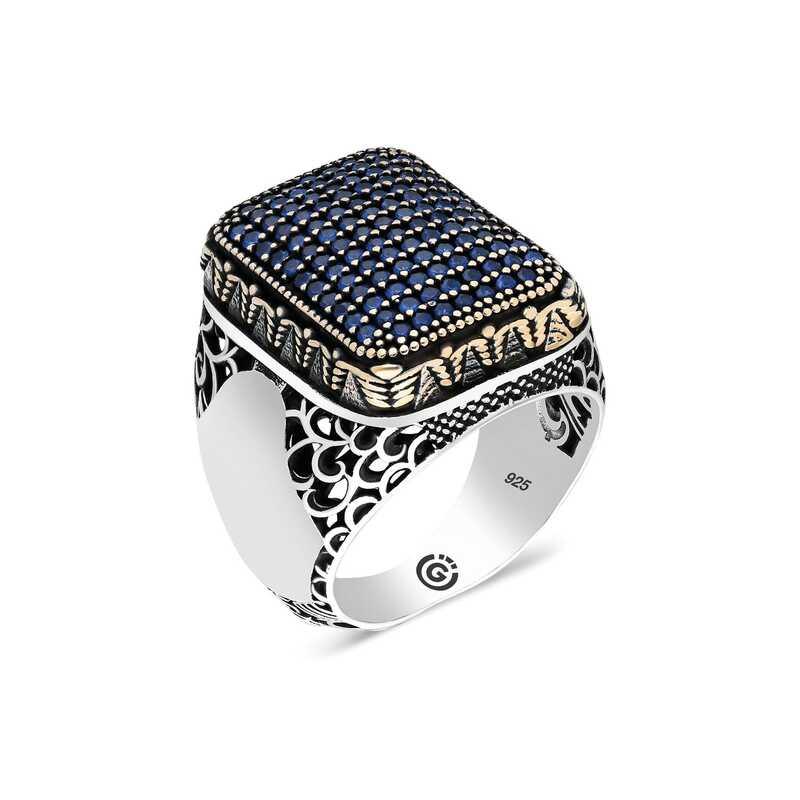 This men's ring model, consisting of zircon navy blue stone on silver, is a stylish accessory that you can use at any time of the day. You can gift this ring to yourself or your loved ones on your birthday, father's day or special days. Navy blue stone men's ring model is made of 925 sterling silver. Oxide coating is applied on silver. Silver men's ring models with oxide coating preserve their shine for a long time. As with all men's rings, the silver zircon navy blue stone men's ring model is also produced by hand. There may be a ± 10% deviation in the specified average product weight due to silver and precious stones.