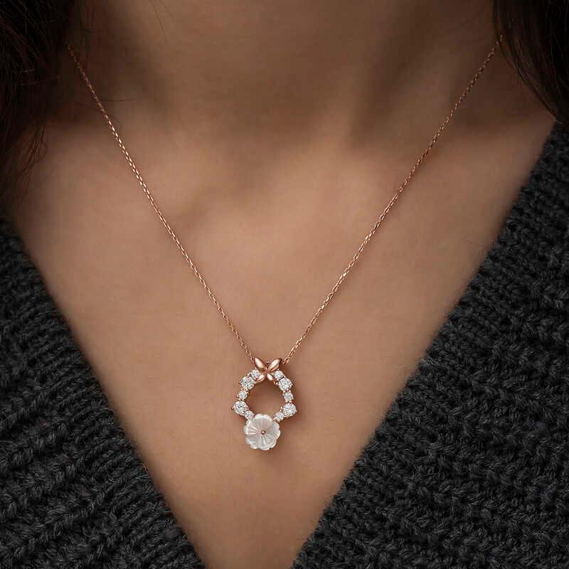 As the weather warms, nature comes to life and heralds the arrival of spring. Trees covered in green, colorful flowers bloom and welcome us with their unique scents. This necklace, inspired by nature, symbolizes rebirth and spring. This stylish necklace is a perfect option for a birthday gift, Valentine's Day or special occasions. The necklace is made of 925 sterling silver. Rose plating is applied to silver. Rose plating gives the silver a pink copper color. Like other necklaces, the silver spring flower necklace is also handmade. There may be a ± 10% deviation in the average product weight due to silver and precious stones.