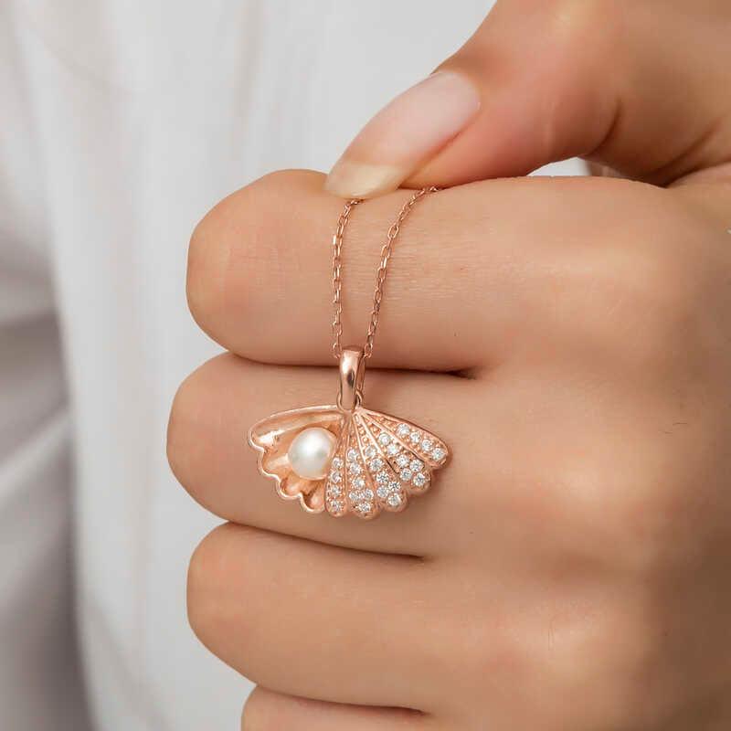Are you looking for a special gift for your lover, if you are in favor of simple elegance, the oyster necklace is just for you... You can give this elegant romantic gift to your lover or all your loved ones on your birthday, anniversary, New Year's Eve and Valentine's Day. Rose coating is applied to silver. Silver women's necklaces with rose coating preserve their shine for a long time and oxidation is delayed. Rose coating gives the copper color to silver. As with all women's silver necklaces, the silver oyster necklace is also handmade. There may be a ± 10% deviation in the specified average product weight due to silver and precious stones.