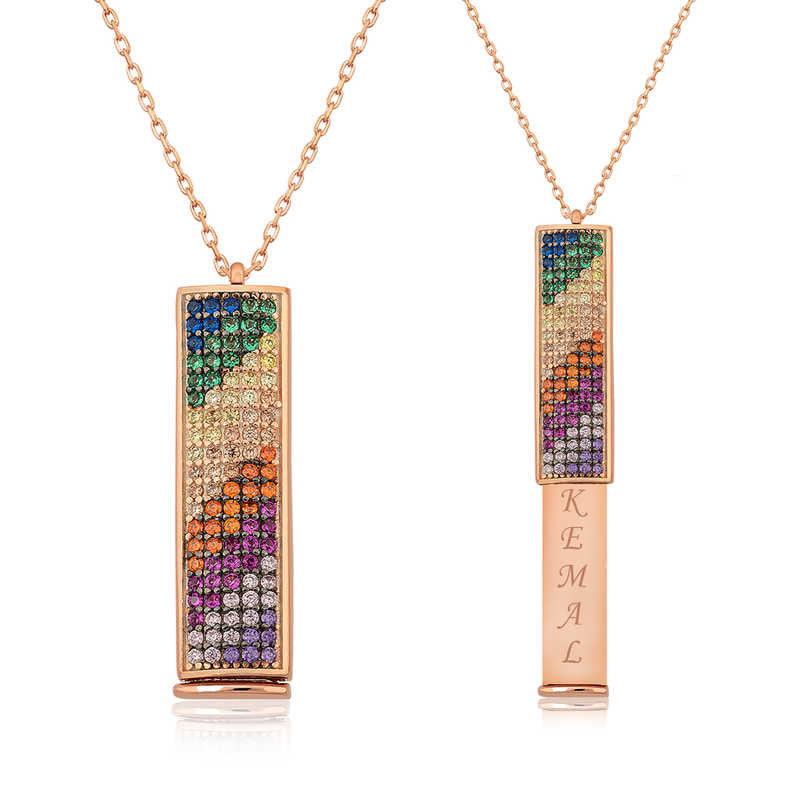 The necklace that you can always remind your love and first-time happiness to your lover, and that you can have your name written inside, will accompany your most romantic moments, is specially designed for lovers. The personalized necklace decorated with colored stones and that you can have your name written inside will be one of the most meaningful gifts you can give to your loved one with whom you expect a long relationship. This specially designed necklace is made of 925 sterling silver. Rose coating is applied on silver. Silver women's necklace models with rose coating preserve their shine for a long time, turn silver into pink color and delay oxidation. The stones on the necklace are zircon. The chain length is 45 cm on average. There may be ± 10% deviation in the weight of the product due to silver and precious stones.