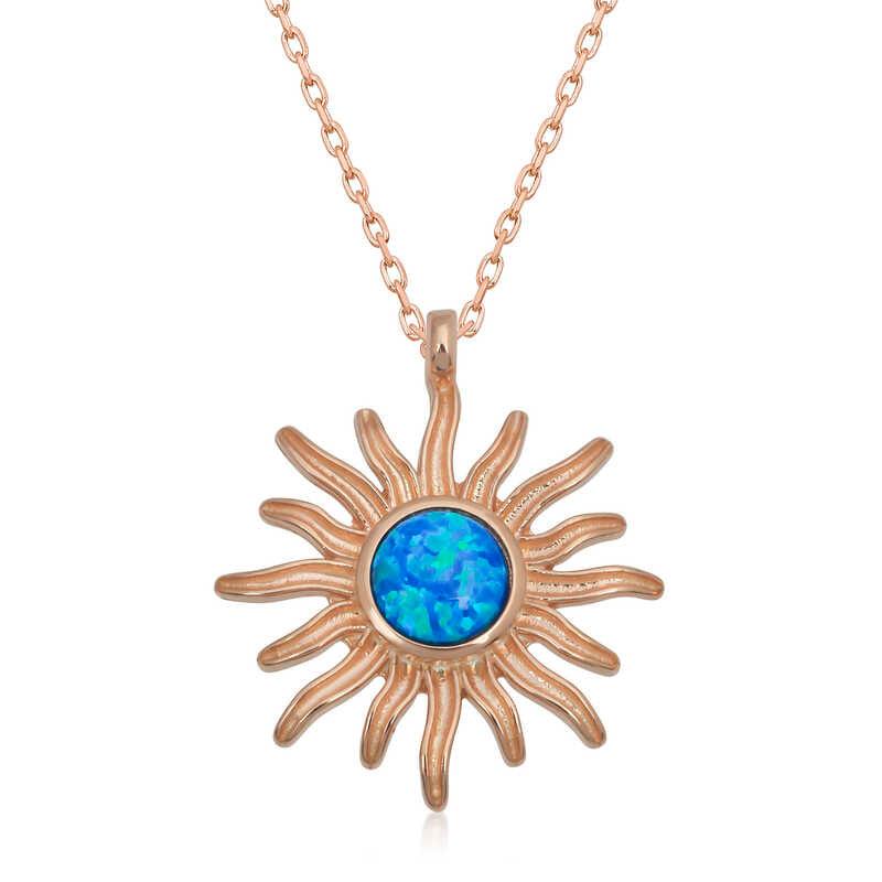 Silver Rose Blue Opal Stone Sun Women's Necklace