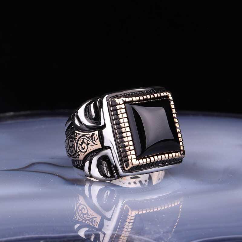 This men's ring model, made of onyx stone on silver, is a stylish accessory that you can use at any time of the day. You can gift this ring to yourself or your loved ones on your birthday, father's day or special days. Black square onyx stone men's ring model is made of 925 sterling silver. Oxide coating is applied on silver. Oxide coated silver men's ring models preserve their shine for a long time. As with all men's rings, the silver black square onyx stone men's ring model is also produced by hand. There may be a ± 10% deviation in the specified average product weight due to silver and precious stones.