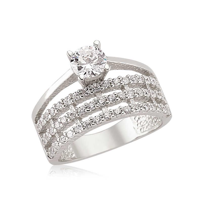 Gümüş Üç Sıra Tek Taş Bayan Yüzük
