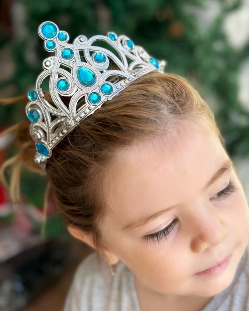 Bu zarif taç, ışıltılı mavi taşlarla süslenmiş ve zarif bir görünüme sahiptir. Taçtaki mavi taşlar, Elsa'nın buz büyülerini temsil ederek masalsı bir atmosfer yaratır.