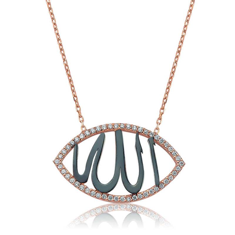 This stylish necklace model, which is a special accessory that those who want to carry their faith will not part with in their daily lives, will be a meaningful way to express spiritual feelings. This wonderfully designed necklace will give you and your loved ones peace. The women's necklace with Arabic Allah written on it is made of 925 sterling silver. Rose gold plating is made on silver. Silver women's necklace models with rose gold plating preserve their shine for a long time and oxidation is delayed. The stones on the necklace are zircon. The average silver chain length is 45 cm. As with all silver women's necklace models, the silver women's necklace with Allah written on it is also produced by hand. There may be a ± 10% deviation in the specified product weight due to silver and precious stones.