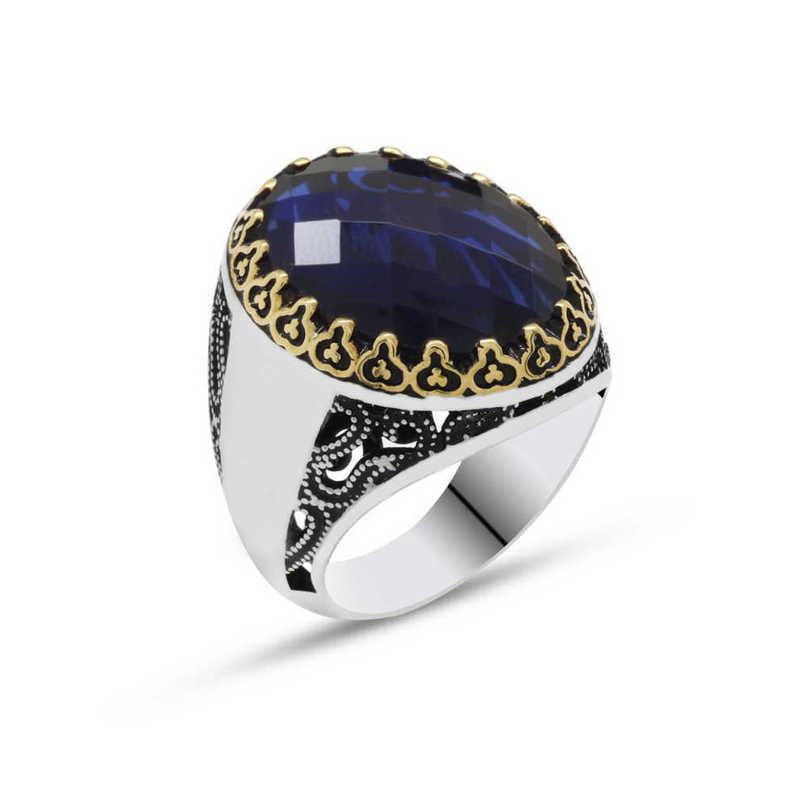 This ring made of blue zircon stone on silver is an accessory with countless health benefits that you can use at any time of the day. You can gift this ring to yourself or your loved ones on your birthday, Father's Day or special days. Blue zircon stone men's ring model is made of 925 sterling silver. Oxide coating is applied on silver. Silver men's ring models with oxide coating preserve their shine for a long time. As with all men's rings, the silver blue zircon stone men's ring model is also produced by hand. There may be a ± 10% deviation in the specified average product weight due to silver and precious stones.