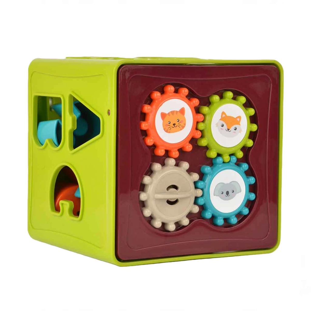 • The different faces of the cube help to learn concepts such as size and shape, and the stacking game helps the baby develop fine motor skills and hand-eye coordination.