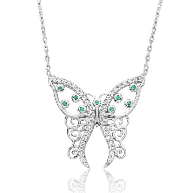 Butterflies symbolizing freedom, innocence and purity are the expression of pure love and passion. The green butterfly women's necklace that you and your loved ones will enjoy wearing will be one of the most beautiful gifts. The necklace is made of 925 sterling silver. Rhodium plating is applied on silver. Silver women's necklaces with rhodium plating preserve their shine for a long time, turn silver into white gold and delay oxidation. The average silver chain length is 45 cm. As with all silver women's necklaces, the silver patterned butterfly women's necklace model is also produced by hand. There may be a ± 10% deviation in the specified average product weight due to silver and precious stones.