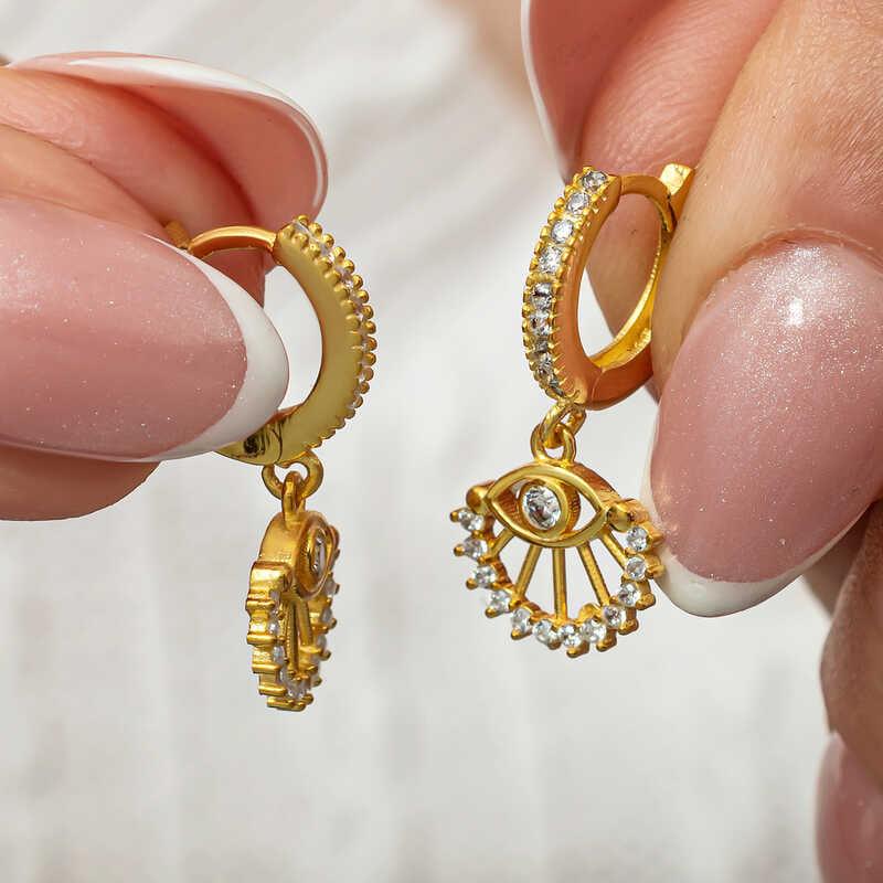 Silver Dangle Gold Eye Women's Earrings