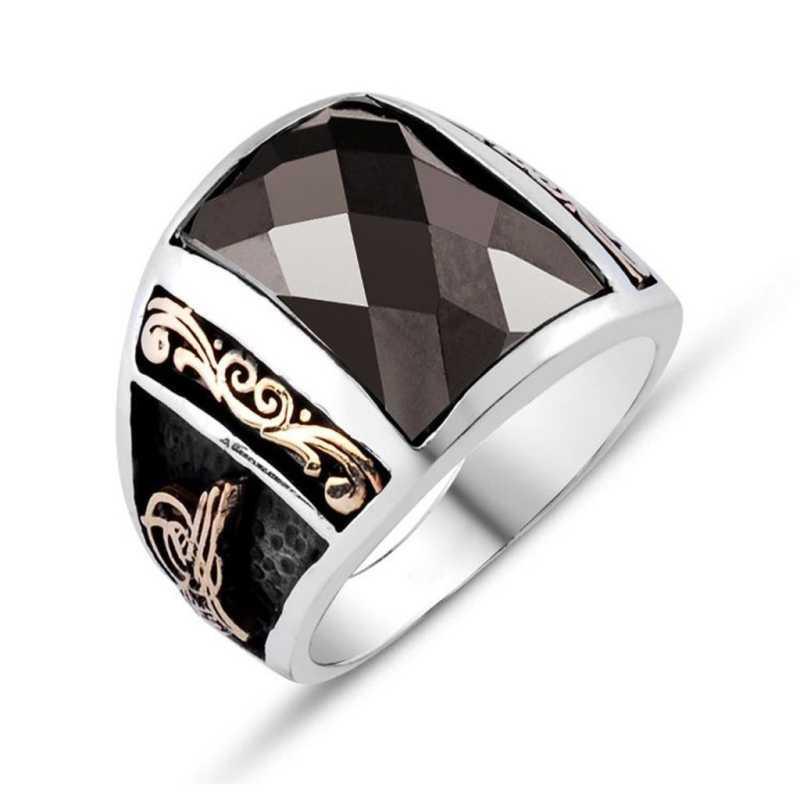 Tughra means the signature of the Ottoman sultans. Each tughra expresses the name, existence and reign of the sultan it belongs to. The tughra symbol has survived to the present day in many ways, different for each sultan. The tughra has been preserved in every period of the Ottoman Empire and has never lost its importance. And over time, it has also had an important place in our calligraphy and is kept alive artistically by calligraphers today. You can enjoy using the silver ring that reflects this art and give it to your loved ones as a gift. The tughra men's ring model is made of 925 sterling silver. The tughra ring is oxide coated on silver. The black stone on the ring is tachonyx. As with all silver men's rings, the silver black stone tughra men's ring model is also produced entirely by hand. There may be a ± 10% deviation in the average product weight specified due to silver and precious stones.