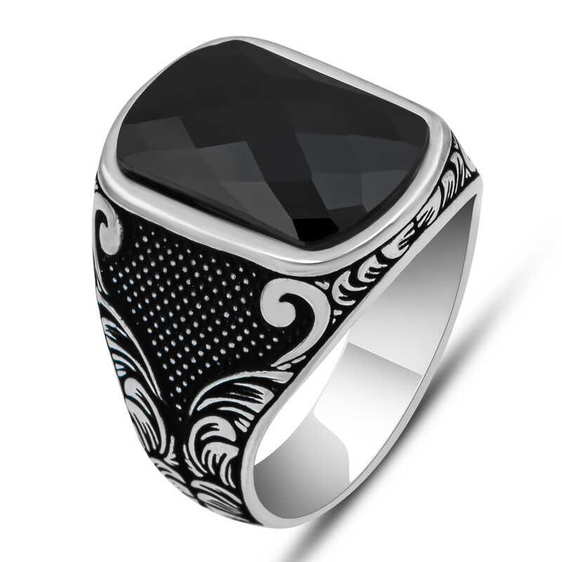 This ring model, consisting of zircon stones on silver, is a stylish accessory that you can use at any time of the day. You can gift this ring to yourself or your loved ones on birthdays, father's day or special days. Black zircon stone men's ring model is made of 925 sterling silver. Oxide coating is applied to silver. Oxide coated silver men's ring models preserve their shine for a long time. As with all men's rings, the silver black zircon stone square men's ring model is also produced by hand. There may be a ± 10% deviation in the specified average product weight due to silver and precious stones.