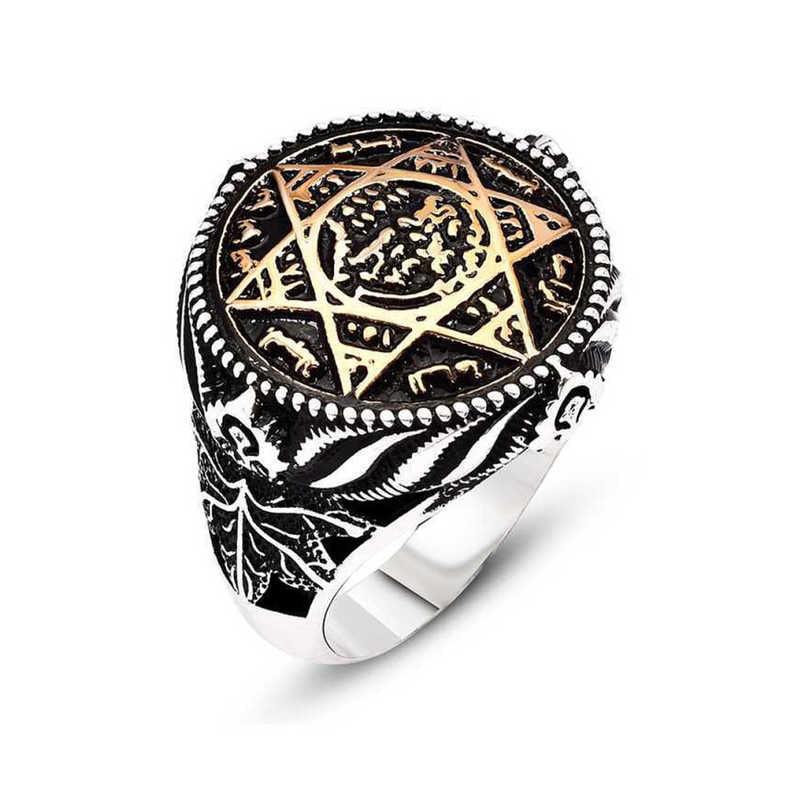 The ring with this seal was used by Adam and left in heaven when he came to the world, and later brought to David by Gabriel with the permission of God Almighty. It was given to his son Solomon because he was worthy. First of all, it symbolizes the attributes of glory and beauty of Almighty Allah. This seal is a symbol, a divine symbol. You can also gift the Silver Solomon Seal Ring to your loved ones. Oxidized silver is coated. All of our products are handmade. There may be a ± 10% deviation in the average product weight due to silver and precious stones.