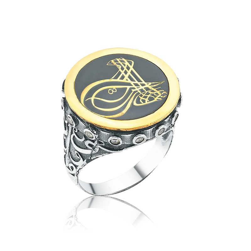 Silver Tughra Men's Ring Tughra means the signature of the Ottoman sultans. Each tughra expresses the name, existence and reign...