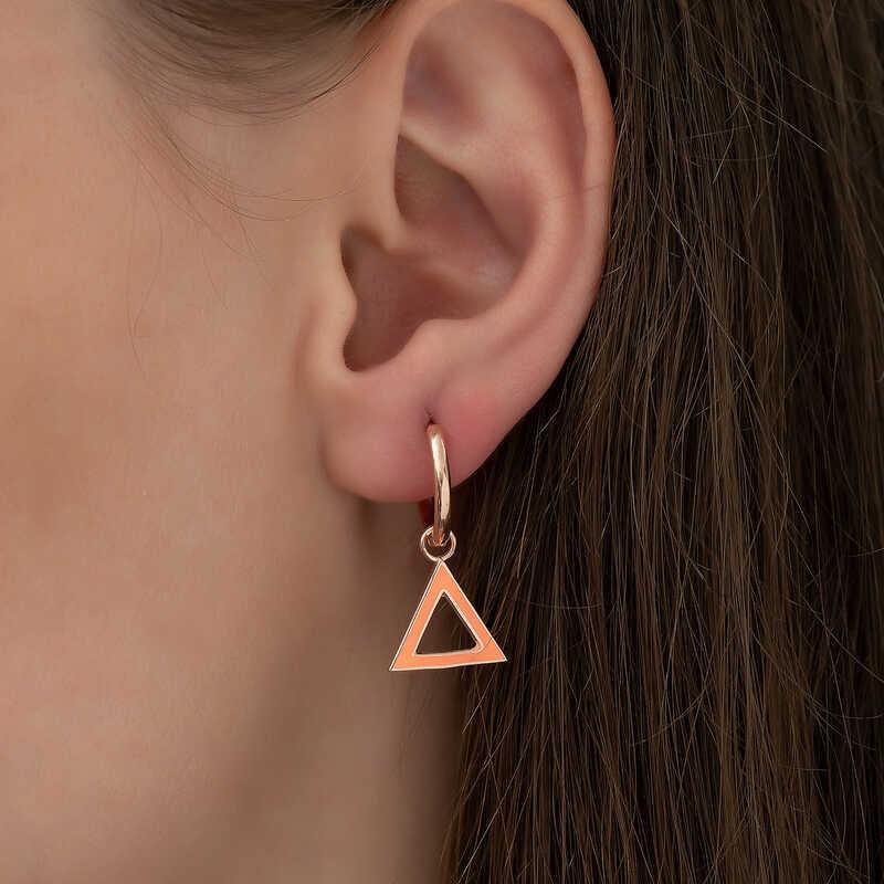 The most special earring models designed in line with fashion for women who care about their appearance are included in this collection. You can also create an eye-catching and fascinating style with earring models, each of which appeals to a different style and use. Fluorescent orange triangle earrings are among the original models that can adapt to the style of young people and women who feel young. This earring is a perfect option for birthday gifts, Valentine's Day gifts or special occasions. Silver fluorescent orange triangle women's earrings; Made of 925 sterling silver. Rose coating is applied on silver. Silver earring models with rose coating preserve their shine for a long time and oxidation is delayed. As with all women's earrings, this earring model is also produced by hand. There may be a ± 10% deviation in the specified average product weight due to silver and precious stones.