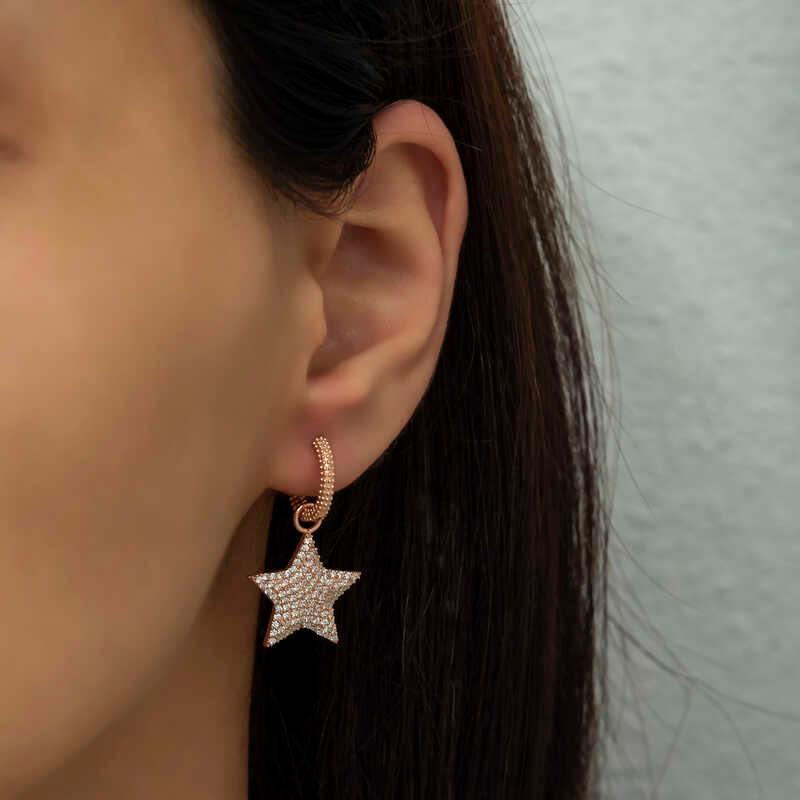 The star is an auspicious symbol believed to bring luck in many societies and teachings. It carries the energy of the Planet Venus. The Planet Venus is also the representative of love and passion energy. This stylish zircon stone star earring is a perfect option for a birthday gift, Valentine's Day gift or special occasions. Silver rose zircon stone star women's earring is made of 925 sterling silver. There is a rose coating on this earring. Silver women's earring models with rose coating preserve their shine for a long time. As with all our silver women's earring models, the silver rose star women's earring model is also produced by hand. There may be a ± 10% deviation in the specified average product weight due to silver and precious stones.