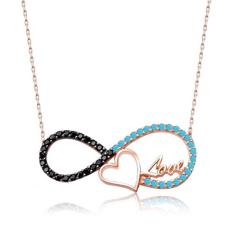 One of the most beautiful and meaningful ways to express your eternal love to your lover is infinity-themed jewelry. With this special necklace that you will give to your lover, you can express your eternal love and affection to her and give the message that you will be together forever. Turquoise stone infinity women's necklace is made of 925 sterling silver. Gold plating is made on silver. Silver women's necklace models that are gold plated preserve their shine for a long time and oxidation is delayed. The stones on the necklace are turquoise colored nano stones. The silver chain length is 45 cm on average. This turquoise stone infinity women's necklace is handmade like all other silver women's necklace models. There may be ± 10% deviation in the specified product weight due to silver and precious stones.