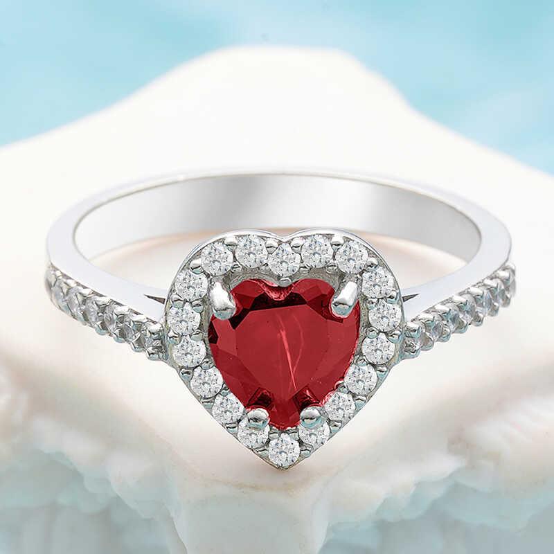 Silver Red Stone Heart Women's Ring
