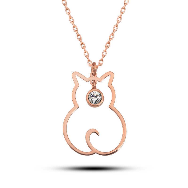 Each birthstone is associated with a specific month. Diamond is the birthstone for April. The stone symbolizes unity, trust, loyalty and devotion. Diamond is considered a traditional stone for engagement and wedding rings. It is said to be the best friend of women, representing faith, love, innocence, beauty, clarity and purity. Cats, the cute source of joy in our homes, are the symbol of innocence as well as being clean. They have a noble and logical personality, excellent intuition and rational sensitivity. Silver jewelry, which is one of the most preferred gift options for special days, is designed for those who want to make their loved ones happy and give them a gift that they can carry with them at all times. You can gift the cat-figured silver necklace model, which is the symbol of innocence, to your sister, lover or friends. The diamond-stone cat woman necklace model is made of 925 sterling silver. Rose plating is applied to the silver. Silver cat necklace models with rose plating preserve their shine for a long time and oxidation is delayed. All stones on the necklace are diamonds. The average silver chain length is 45 cm. The silver women's cat necklace is handmade like all other silver women's necklace models. Due to silver and precious stones, there may be a ± 10% deviation in the average product weight.
