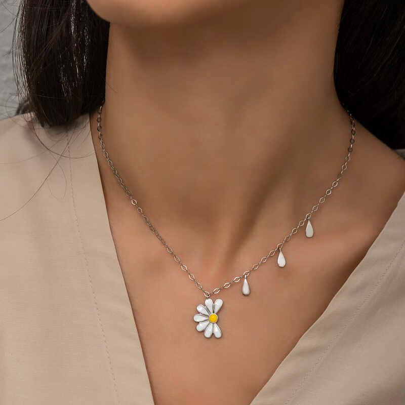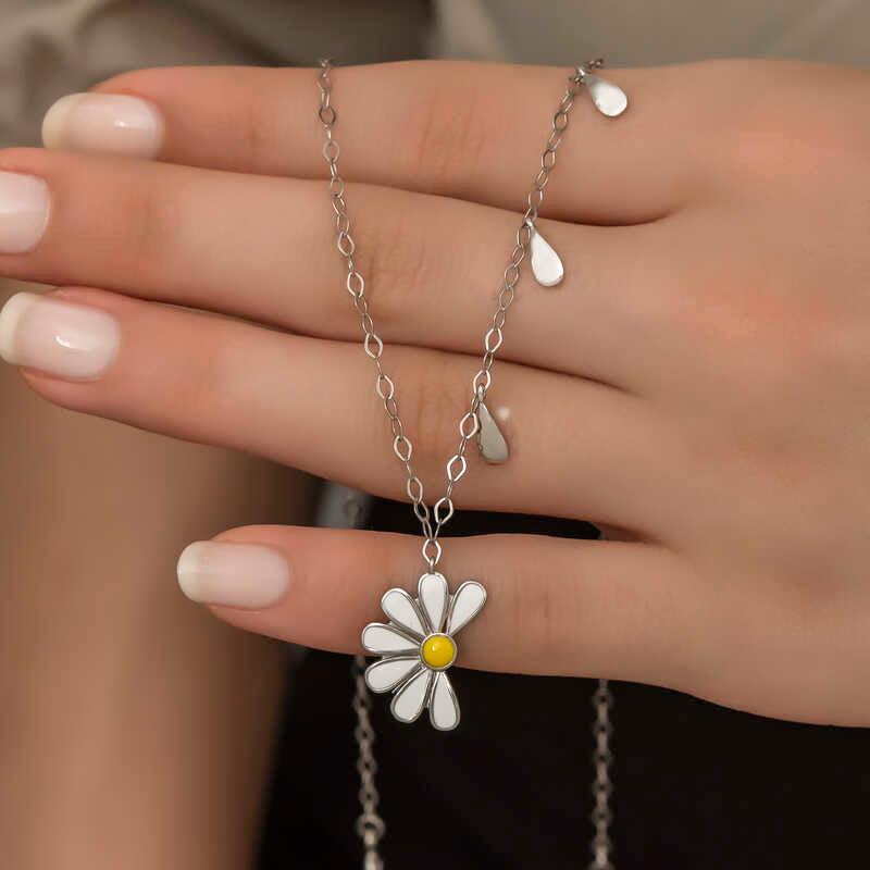 Daisy flower expresses the meaning of pure love. One of its greatest features is that there is one on each stem. This sparkling necklace, which emerged by designing this beauty, is decorated for you... This stylish necklace is a perfect option that can be preferred on special occasions as a birthday gift, Valentine's Day gift or a gift for mothers. Silver daisy loves loves loves women necklace is made of 925 sterling silver. There is rhodium plating on this necklace. Silver women's necklace models with rhodium plating preserve their shine for a long time. As with all our silver women's necklace models, the silver daisy loves loves loves women necklace model is also produced by hand. There may be ± 10% deviation in the specified average product weight due to silver and precious stones.