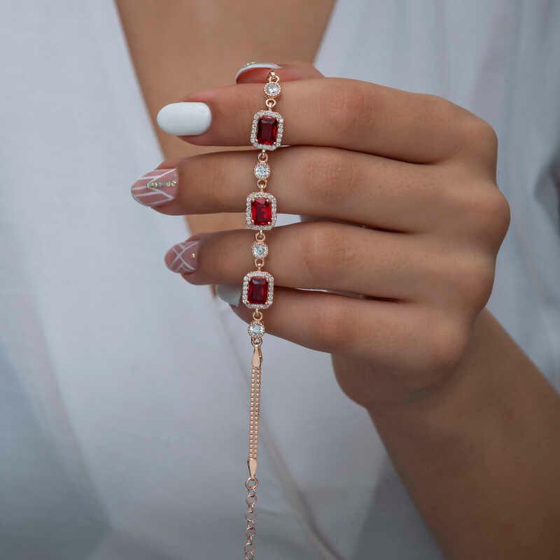 You can use the silver baguette bracelet models designed in accordance with fashion in a stylish way both in your daily life and on special days and nights. You can complete your combinations with innovative products that appeal to the taste of women of all ages. With designs that each appeal to a different style, you can also choose our models that suit your sports, classic and alternative clothing styles. This stylish bracelet is a perfect option that can be preferred as a birthday gift, Valentine's Day gift or on special days. Silver baguette red stone women's bracelet is made of 925 sterling silver. There is rose coating on this bracelet. Rose coated products preserve their shine for a long time and delay oxidation. As with all silver women's bracelet models, the silver baguette red stone women's bracelet model is also produced by hand. There may be a ± 10% deviation in the specified average product weight due to silver and precious stones.