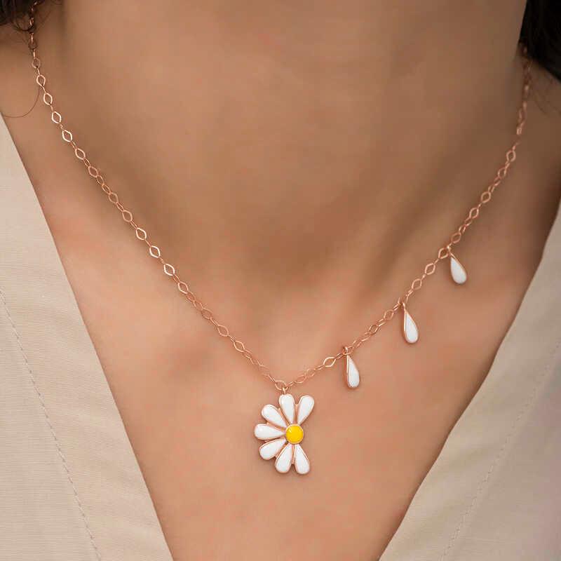 Daisy flower expresses the meaning of pure love. One of its greatest features is that there is one on each stem. This sparkling necklace, which emerged by designing this beauty, is decorated for you... This stylish necklace is a perfect option that can be preferred on special occasions as a birthday gift, Valentine's Day gift or a gift for mothers. Silver daisy loves loves loves women necklace is made of 925 sterling silver. There is rose coating on this necklace. Silver women's necklace models with rose coating preserve their shine for a long time and turn the silver color into pink. As with all our silver women's necklace models, the silver daisy loves loves loves women necklace model is also produced by hand. There may be ± 10% deviation in the specified average product weight due to silver and precious stones.