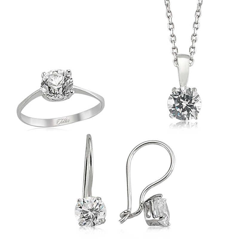 Silver Single Stone Women's Set