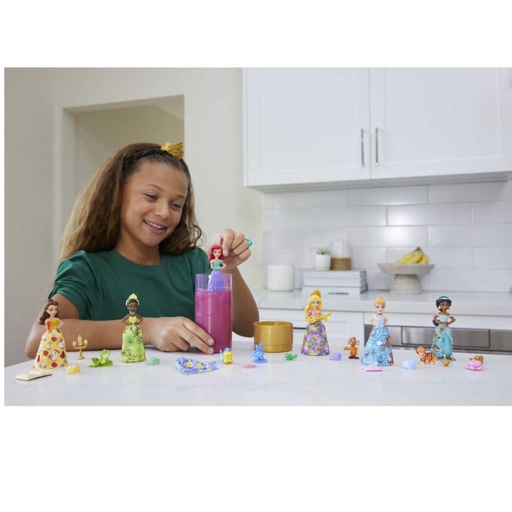 Inspired by the beloved animated characters from popular Disney movies, the Princess Color Reveal™ dolls set comes with 6 magical surprises in each pack!