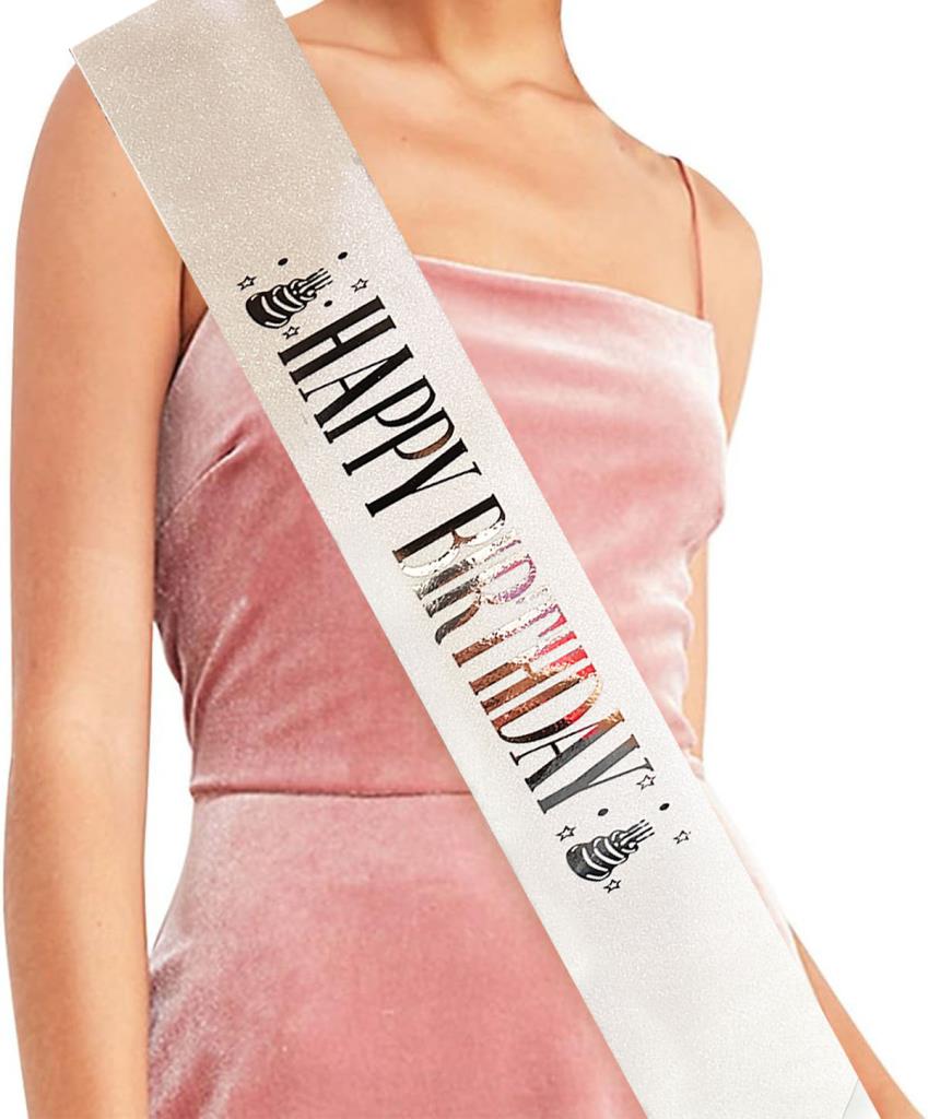 Why Should You Choose the White Silver Large "Happy Birthday" Written Glittery Sash Belt?