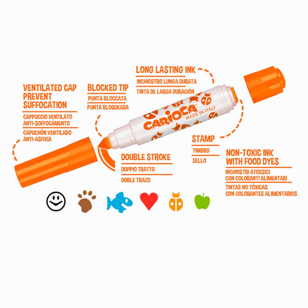 Carioca Stamperello Washable Felt Tip Paint Pen 6 Pack (One End Felt Tip Pen, One End Stamp) Features; Contains 6...