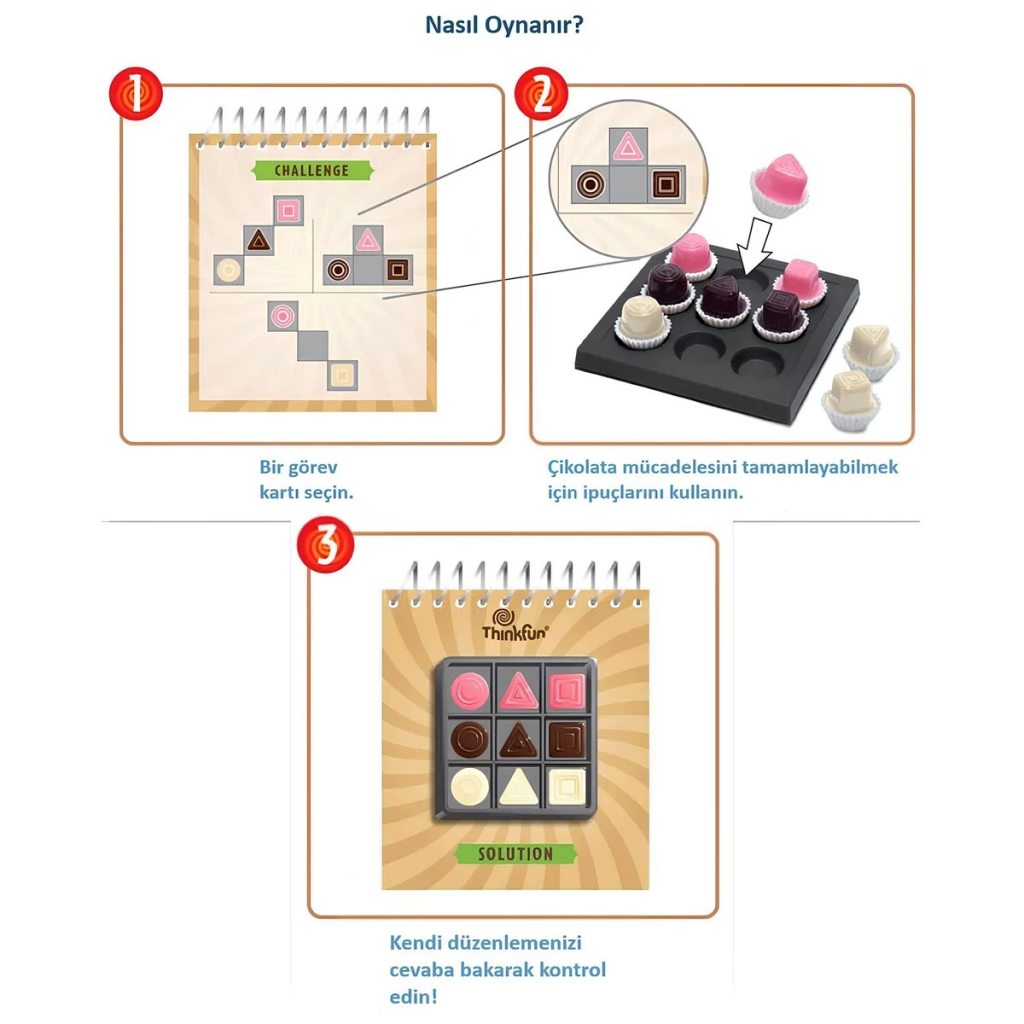 Using the clues, place all nine chocolate pieces in their correct positions on the tray. Similar to Sudoku, before you move