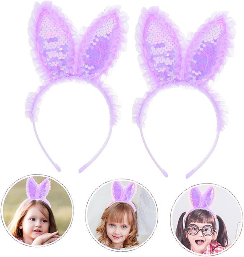 Be the star of the parties with the Purple Sequined Led Light Rabbit Ear Crown with Lace Edges, where fun and elegance come together!