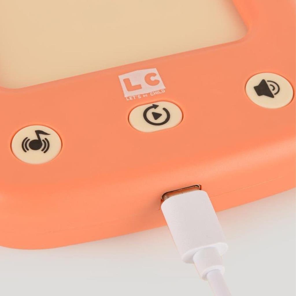 It has a level volume control to adjust the sound as needed. It is adjusted to suit small hands.