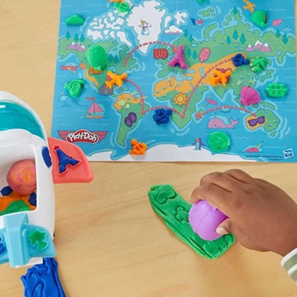 This airplane toy for kids is a great way to play with Play-Doh modeling compound and create your own adventures around the world.