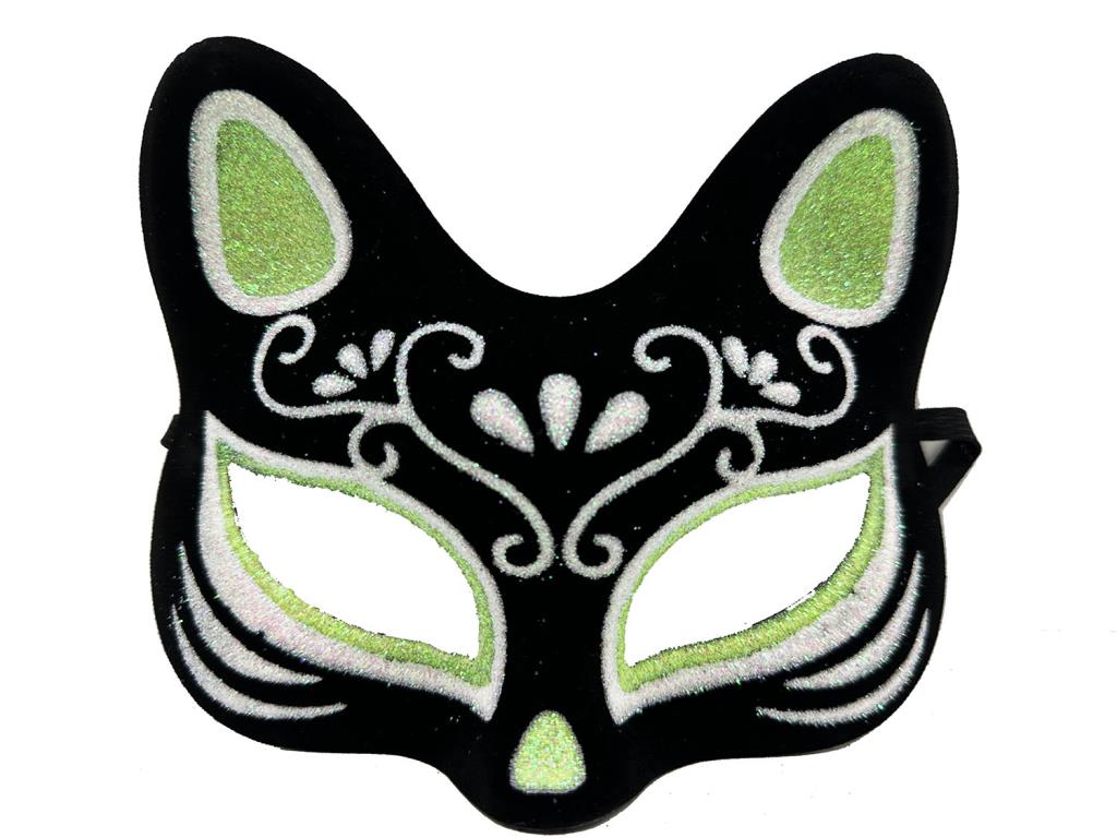 Dazzle with the Black Color Silver Green Glitter Suede Coated Cat Mask, one of the most mysterious and impressive masks of the Costume Party!