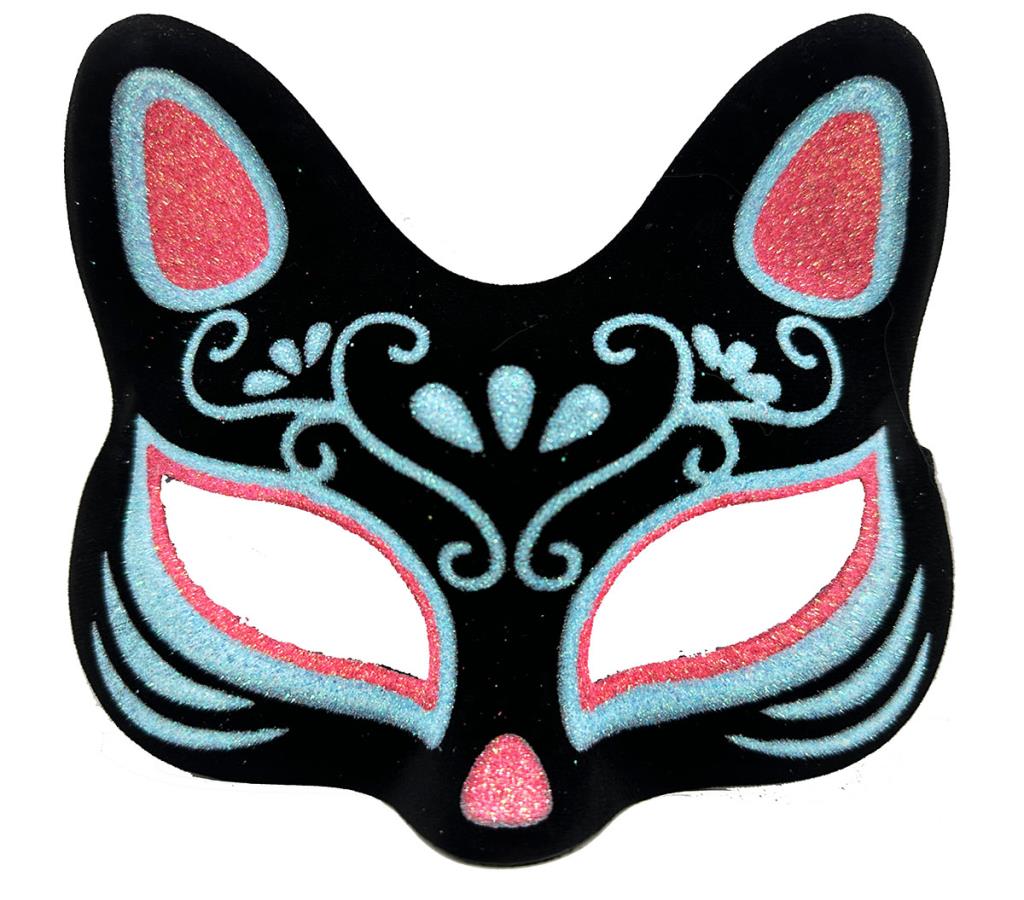 NessiWorld Black Color Blue Red Glitter Suede Coating Cat Mask 17x14 cm