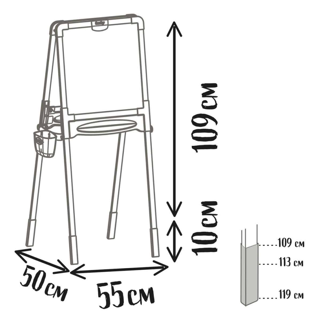 On the magnetic plastic side, children can use water-soluble felt-tip pens and 72 magnetic letters and numbers.