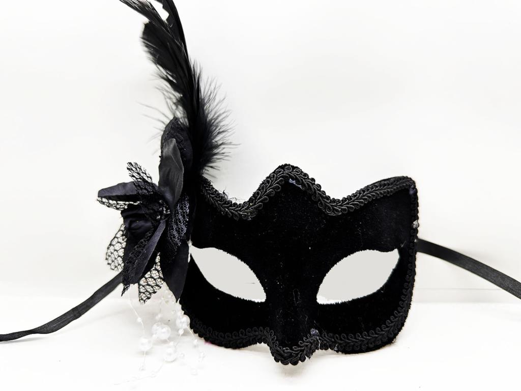 How to Use the Black Suede Covered Side Feather White Pearl Party Mask?