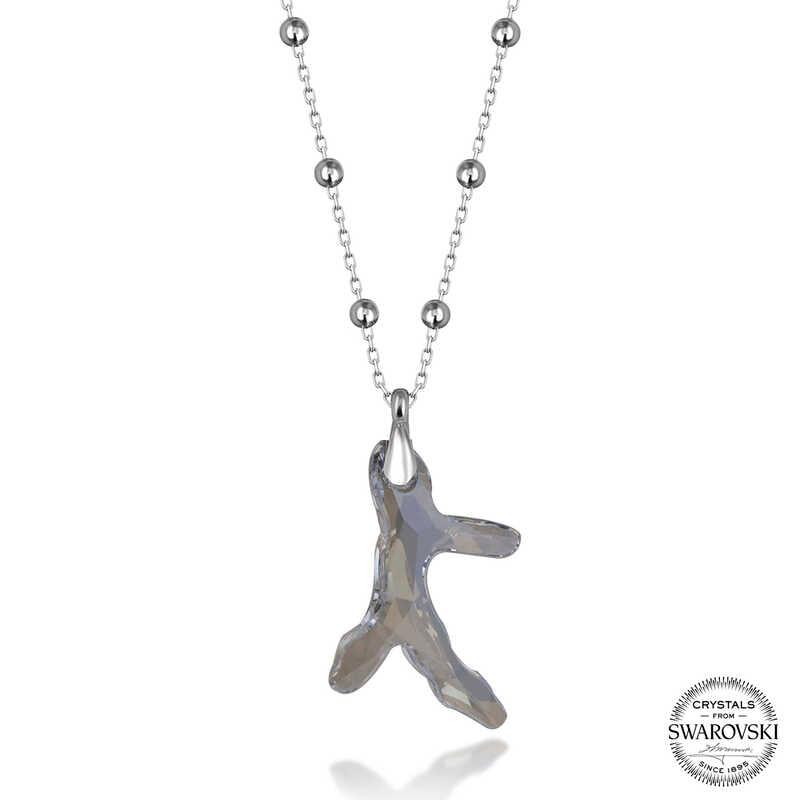 Swarovski Crystal Stone Ball Chain Coral Silver Women's Necklace