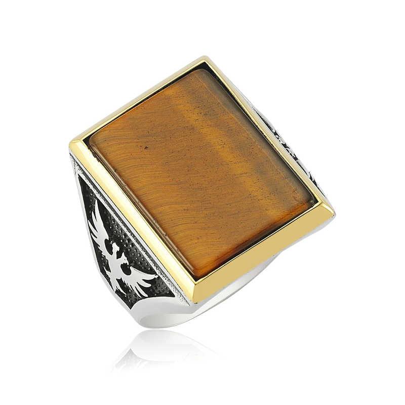 Tiger's eye is a precious stone belonging to the Chalcedony group, a subspecies of Crystal Quartz. It takes its name from its unique color tones resembling tiger's eyes. It has linear tones defined as golden or honey-colored. Its iridescent and silky appearance is one of the features that make tiger's eye unique. Tiger's eye, also defined as the "stone of lovers", is a stone that appeals to emotions. Among precious stones, it is one of the most prominent with its "protective" feature. It is also one of its known features that it changes color according to the movements or mood of the user. You can prefer this stylish ring for yourself or your loved ones on their birthdays, father's day or special days. This stylish ring is made of 925 sterling silver. Oxidized silver is coated. Oxidized rings preserve their shine for a long time. As with all men's rings, the silver tiger's eye men's ring is also handmade. There may be a ± 10% deviation in the weight of the product due to silver and precious stones.