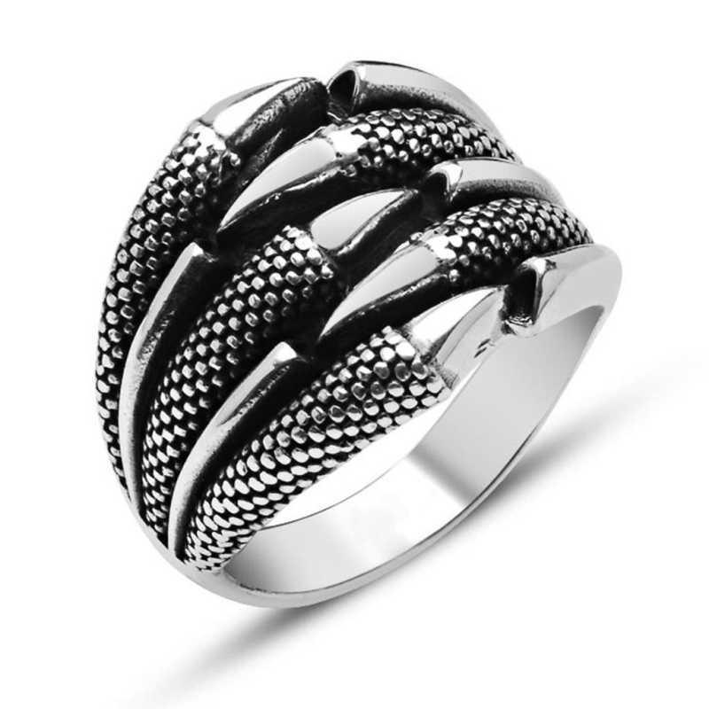 The eagle, the king of birds and descending to the world to fight, is known for being especially warrior and powerful; therefore, it has become the symbol of many nations. Inspired by this deep meaning, the eagle claw men's ring model can be gifted to yourself or your loved ones on your birthday, Father's Day or special days. This stylish men's ring model is made of 925 sterling silver. Oxidized silver is coated. Oxidized rings gain an authentic appearance. As with all men's ring models, the silver eagle claw men's ring model is also handmade. There may be a ± 10% deviation in the specified average product weight due to silver and precious stones.