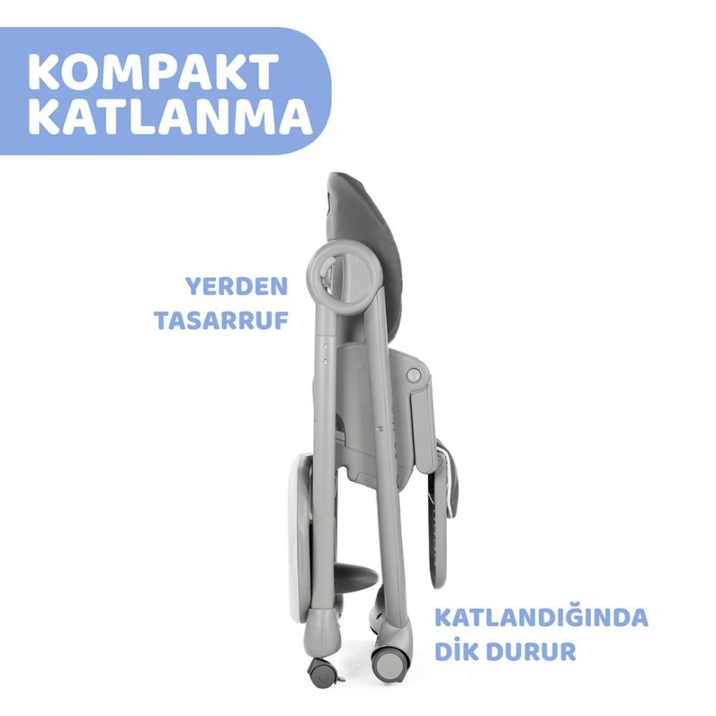 You can move this high chair, which can be adjusted to 8 different heights, wherever you want and adjust it to the desired height thanks to its front and rear wheels.