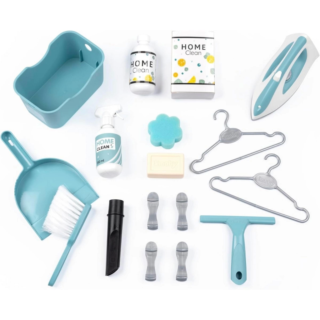Contains 1 x soap, 1 ironing box, 1 x laundry box, 1 x spray, 1 bottle of household product, 1 x soap, 1 sponge and 1 x squeegee.