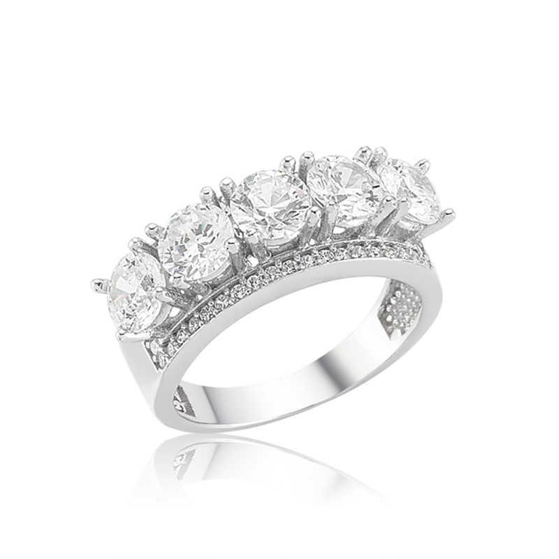 One of the most beautiful and meaningful ways to express your eternal love to your lover is to gift him meaningful silver jewelry. The most important of these will undoubtedly be silver rings. With this silver five-stone women's ring that you will gift to your lover, you can express your eternal love for him and give the message that you will be together forever. This specially designed women's ring consisting of five large and small white stones is made of 925 sterling silver. The stones on the silver five-stone women's ring are zircon. In this ring, rhodium plating is applied to the silver, rhodium-plated silver women's ring models preserve their shine for a long time, and oxidation is delayed. As in the silver five-stone women's ring, all of our ring models are handmade. There may be a ± 10% deviation in the specified product weight due to silver and precious stones.